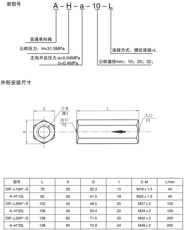 DIF-L10.20.32H直通单向阀