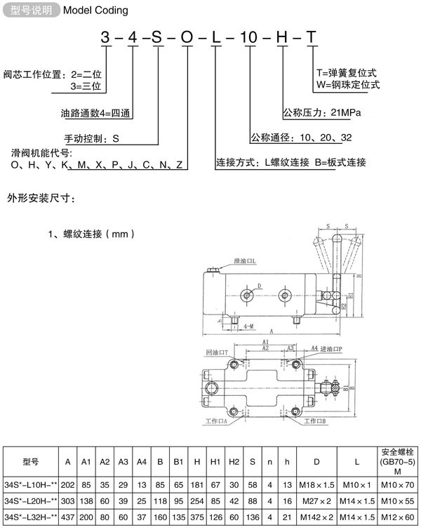 34SM-L10H-T/W榆次型系列手动换向阀